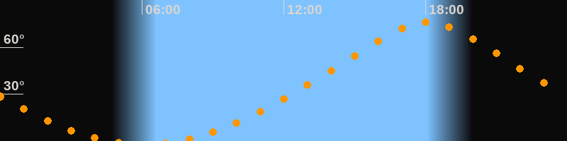 | Höchster Stand (Kulmination) | 18:04 Uhr (h = 76,3°) |