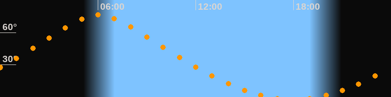 | Höchster Stand (Kulmination) | 06:02 Uhr (h = 76,3°) |