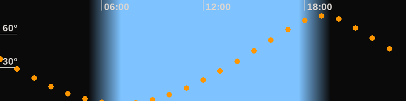 | Höchster Stand (Kulmination) | 19:05 Uhr (h = 76,3°) |