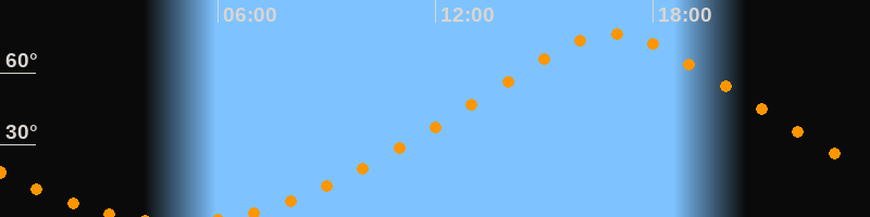 | Höchster Stand (Kulmination) | 16:53 Uhr (h = 76,3°) |