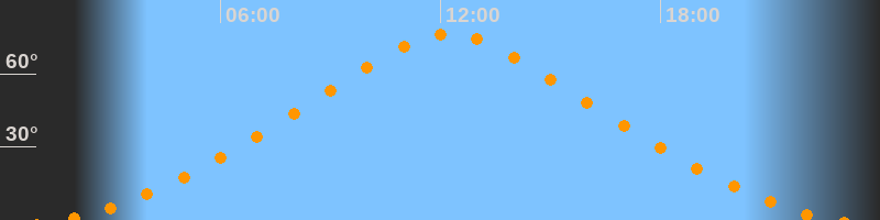 | Höchster Stand (Kulmination) | 12:14 Uhr (h = 76,3°) |