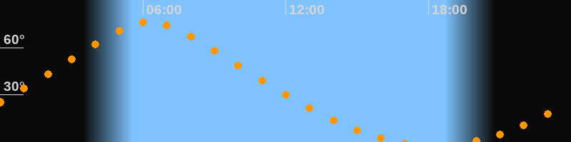 | Höchster Stand (Kulmination) | 06:16 Uhr (h = 76,3°) |