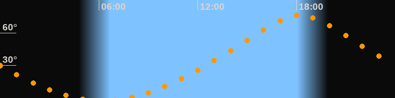 | Höchster Stand (Kulmination) | 18:13 Uhr (h = 76,3°) |