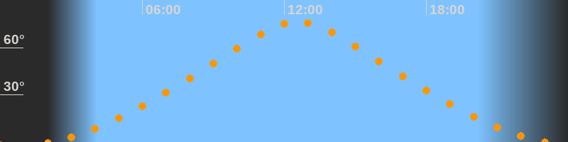 | Höchster Stand (Kulmination) | 12:34 Uhr (h = 76,3°) |