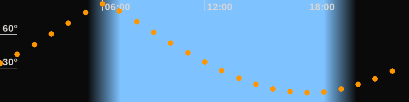 | Höchster Stand (Kulmination) | 06:04 Uhr (h = 87°) |