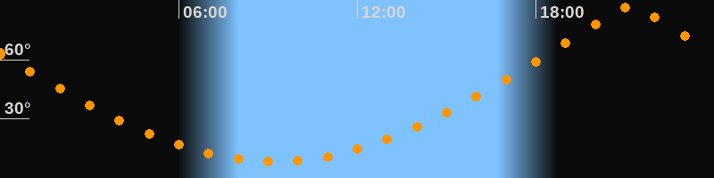 | Höchster Stand (Kulmination) | 21:12 Uhr (h = 87°) |