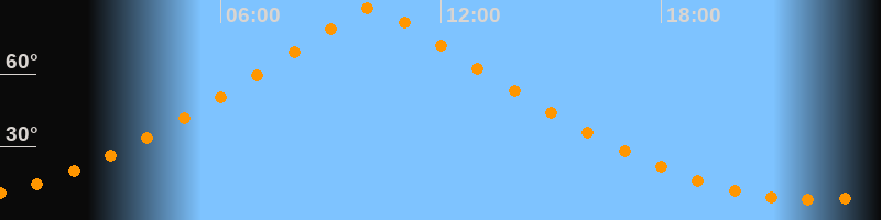 | Höchster Stand (Kulmination) | 10:08 Uhr (h = 87°) |