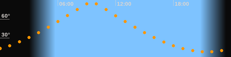 | Höchster Stand (Kulmination) | 09:29 Uhr (h = 87°) |