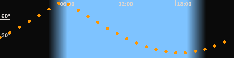 | Höchster Stand (Kulmination) | 06:24 Uhr (h = 87°) |