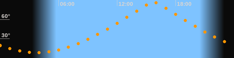 | Höchster Stand (Kulmination) | 15:44 Uhr (h = 87°) |