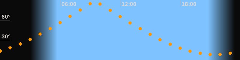 | Höchster Stand (Kulmination) | 09:28 Uhr (h = 87°) |