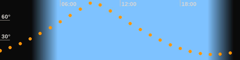 | Höchster Stand (Kulmination) | 09:21 Uhr (h = 87°) |
