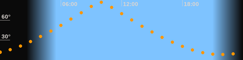 | Höchster Stand (Kulmination) | 09:55 Uhr (h = 87°) |