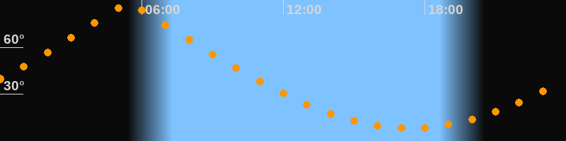 | Höchster Stand (Kulmination) | 05:25 Uhr (h = 87°) |