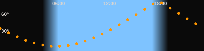 | Höchster Stand (Kulmination) | 18:36 Uhr (h = 87°) |