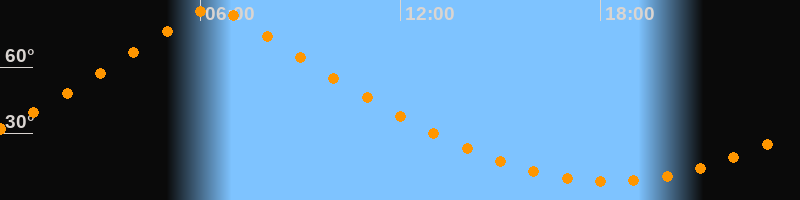 | Höchster Stand (Kulmination) | 06:22 Uhr (h = 87°) |
