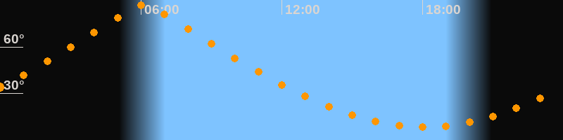 | Höchster Stand (Kulmination) | 06:06 Uhr (h = 87°) |