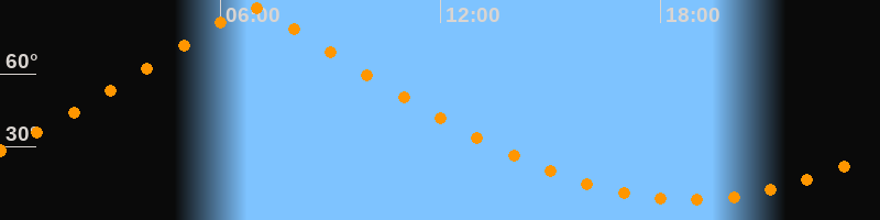 | Höchster Stand (Kulmination) | 06:50 Uhr (h = 87°) |