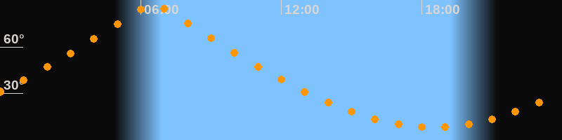 | Höchster Stand (Kulmination) | 06:31 Uhr (h = 87°) |