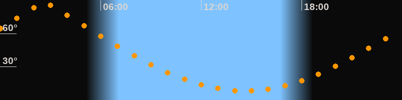 | Höchster Stand (Kulmination) | 02:38 Uhr (h = 87°) |