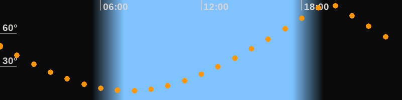 | Höchster Stand (Kulmination) | 19:37 Uhr (h = 87°) |