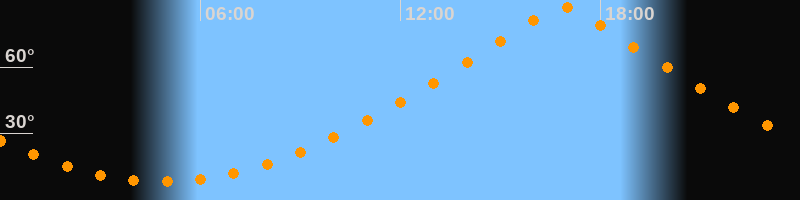 | Höchster Stand (Kulmination) | 16:52 Uhr (h = 87°) |