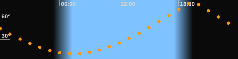 | Höchster Stand (Kulmination) | 19:22 Uhr (h = 87°) |