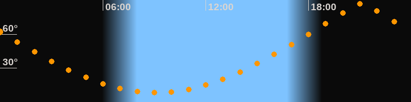 | Höchster Stand (Kulmination) | 21:06 Uhr (h = 87°) |