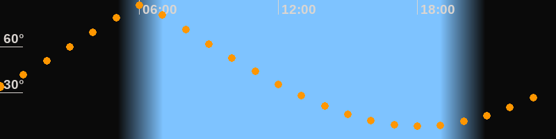 Höchster Stand (Kulmination)06:06 Uhr (h = 87°)