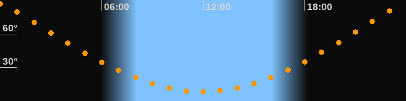 | Höchster Stand (Kulmination) | 23:56 Uhr (h = 87°) |