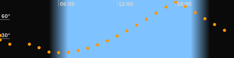 | Höchster Stand (Kulmination) | 18:03 Uhr (h = 87°) |