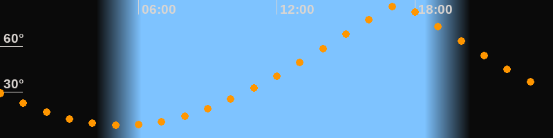 | Höchster Stand (Kulmination) | 17:15 Uhr (h = 87°) |