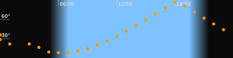 | Höchster Stand (Kulmination) | 18:08 Uhr (h = 87°) |