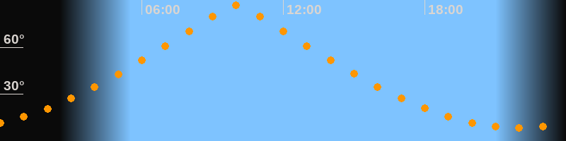 | Höchster Stand (Kulmination) | 10:00 Uhr (h = 87°) |