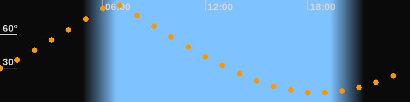 | Höchster Stand (Kulmination) | 06:39 Uhr (h = 87°) |