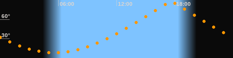 | Höchster Stand (Kulmination) | 17:36 Uhr (h = 87°) |