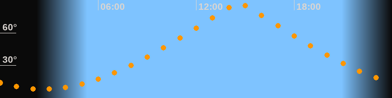 | Höchster Stand (Kulmination) | 14:36 Uhr (h = 87°) |