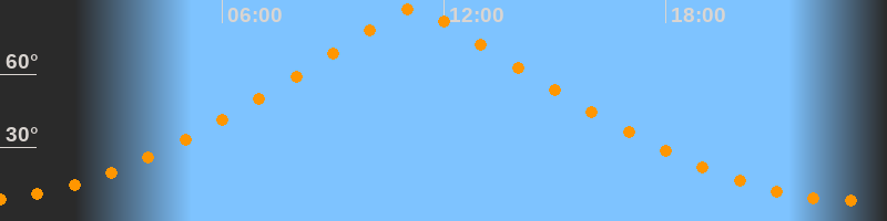 | Höchster Stand (Kulmination) | 11:12 Uhr (h = 87°) |