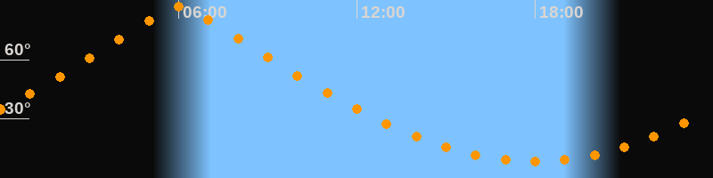 | Höchster Stand (Kulmination) | 06:01 Uhr (h = 87°) |