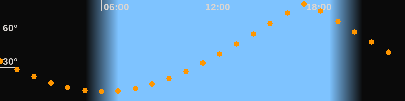 | Höchster Stand (Kulmination) | 18:05 Uhr (h = 87°) |