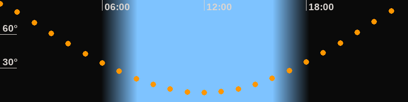 | Höchster Stand (Kulmination) | 23:55 Uhr (h = 87°) |