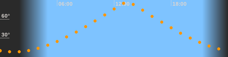 | Höchster Stand (Kulmination) | 13:23 Uhr (h = 87°) |