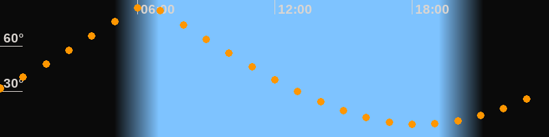 | Höchster Stand (Kulmination) | 06:23 Uhr (h = 87°) |