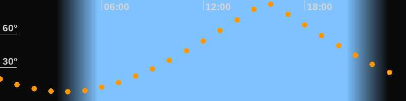| Höchster Stand (Kulmination) | 15:46 Uhr (h = 87°) |