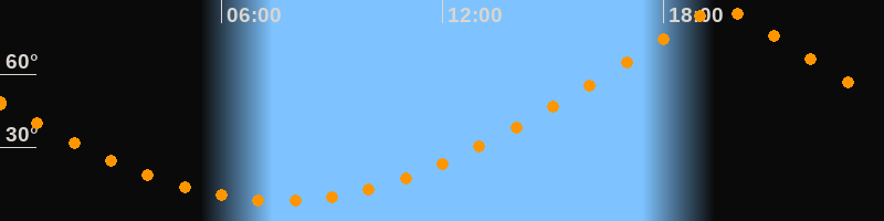 | Höchster Stand (Kulmination) | 19:34 Uhr (h = 87°) |