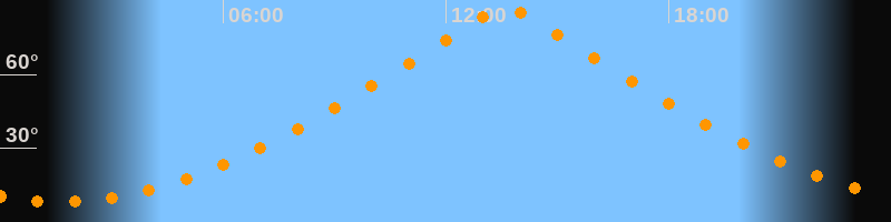| Höchster Stand (Kulmination) | 13:36 Uhr (h = 87°) |