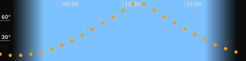 | Höchster Stand (Kulmination) | 13:32 Uhr (h = 87°) |