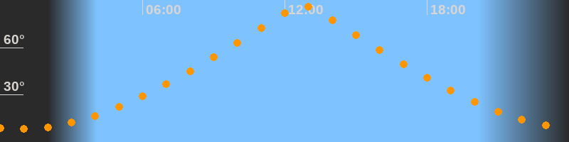 | Höchster Stand (Kulmination) | 12:45 Uhr (h = 87°) |