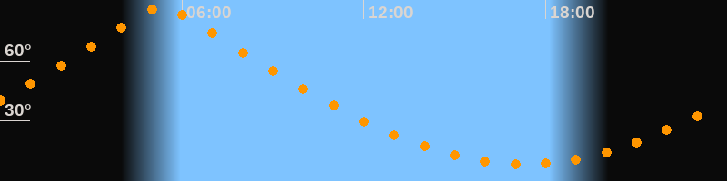 | Höchster Stand (Kulmination) | 05:21 Uhr (h = 87°) |