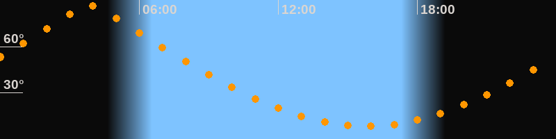 | Höchster Stand (Kulmination) | 03:50 Uhr (h = 87°) |